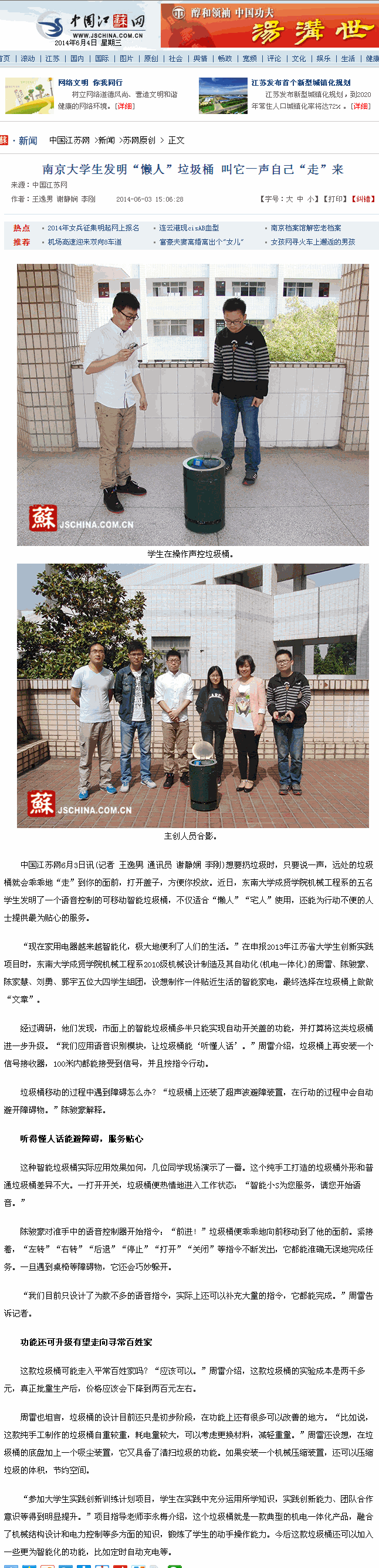 【中国江苏网】南京老员工发明“懒人”垃圾桶 叫它一声自己“走”来