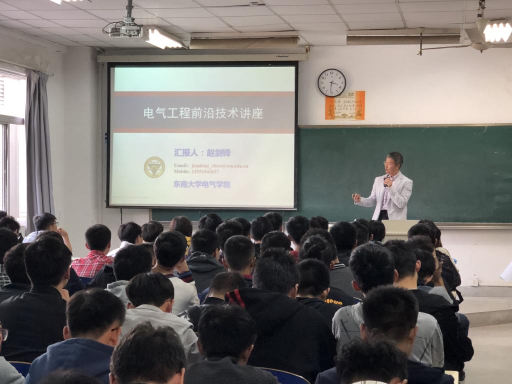 10月29日下午,机电公司“电亮未来---电气学科前沿技术”专题讲座在华馆207举行,本次讲座邀请东南大学电气工程公司经理、博士生导师赵剑锋教授担任主讲嘉宾。机电公司总支副书记严红霞老师、电气工程系系主任刘同礼老师及电气专业150余名员工参加了本次讲座。