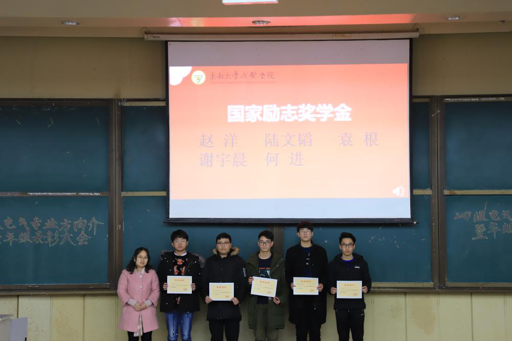 首先,主任为大家分别介绍电气工程及其自动化专业三大方向--电力系统,继电保护以及输配电。刘老师讲解了三个方向各自的发展前景以及就业方向,以供同学们能够更好地找到适合自己的方向,便于自身发展其次,17电气工程5班的曹佳雨同学作为获奖代表上台发言,他对一年多以来辛勤工作的老师们表达感谢,并希望同学们拥有凌云之志,不卑不亢不虚度,活出自己的精彩;最后马丽老师宣读了获奖员工名单,并由出席大会的嘉宾为获奖员工一一颁奖。受表彰的同学怀着满腔喜悦伴着欢快的乐曲依次上台领奖并颁奖老师合影留恋。