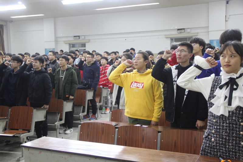 朱宇凡首先对19级机械系整体学习情况及各班上阶段的测验情况做了总结;随后他对各班级在学习辅导方面做出较大贡献的个人提出表扬;最后朱宇凡带领机械系全体成员宣读诚信考试誓词。