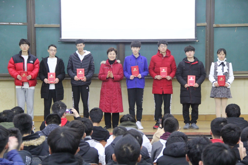 随后,赵小宁老师为2019-2020学年上学期取得优秀成绩的先进个人和集体颁发了奖状;接着,获奖代表机械三班学习委员王一哲同学分享了学习经验、机械设计一班郭延昭同学做出了“诚信考试,从我做起”的呼吁;最后,机械系辅导员赵小宁老师对本次大会做出总结,并对即将到来的期末考试提出期望。