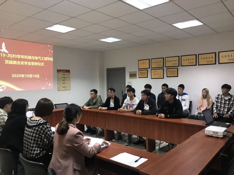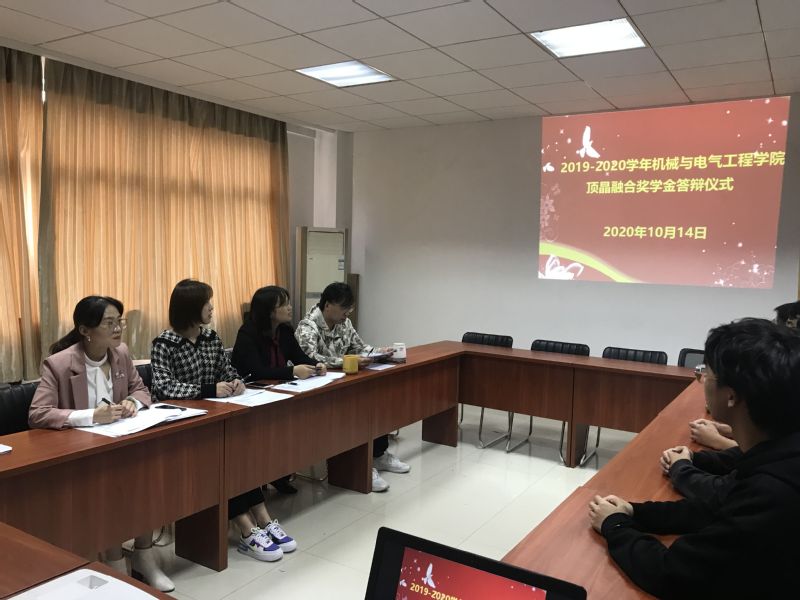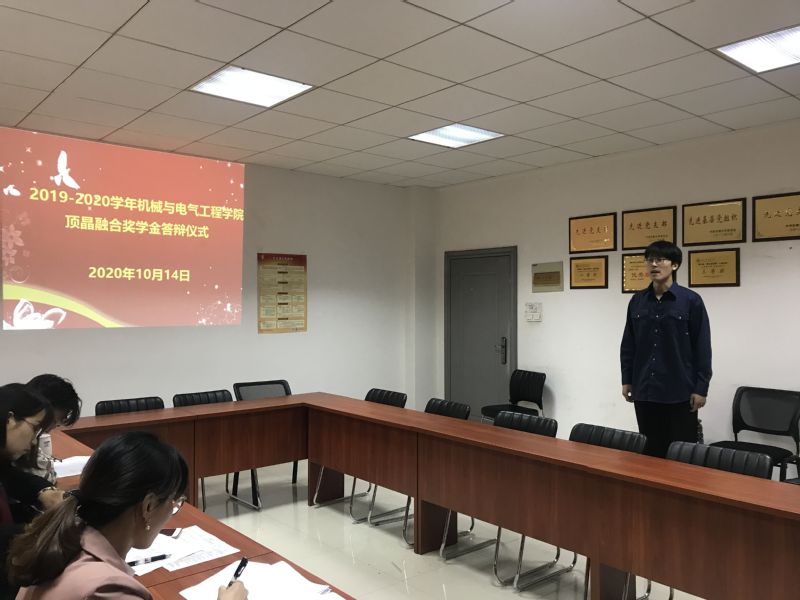 10月14日中午12点,机电公司2020年“顶晶融合”企业奖学金答辩会在成贤310举办。本次答辩会根据《顶晶融合奖学金评选办法(试行)》和《公司员工评奖评优实施细则》,按照规定比例分配评优名额,并在综合测评基础上完成评奖评优工作。机电公司党总支副书记严红霞老师、分团委书记邓蓉蓉老师、辅导员马丽老师、袁兴博老师、员工代表蔡婧瑶同学共计5人担任本次答辩的评委。