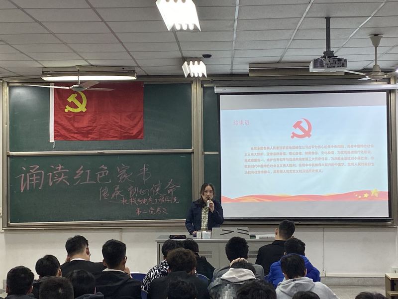 “一固江山奠基石,万千英雄洒碧血。”会上,以朱媛绮、杨勇为代表的21位党员用热情高昂的诵读,重温革命历史,展示革命先辈的初心使命和家国情怀,让在场同学们受到了一次全方位的党性教育和洗礼。