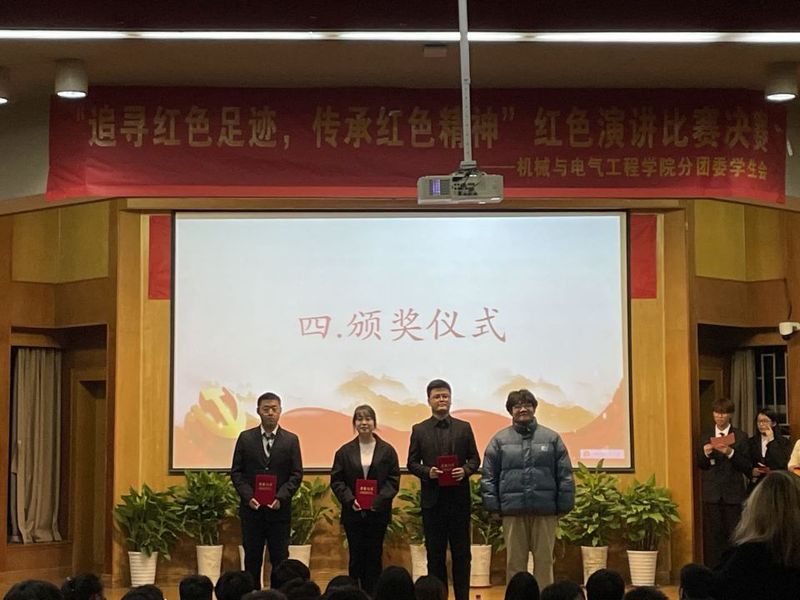 12月2号晚,机电公司“追寻红色足迹,传承红色基因”红色演讲比赛在真知馆报告厅隆重举行。到场的嘉宾有机电公司分团委书记邓蓉蓉老师,辅导员闻阿兰老师,bevictor伟德校团委副书记陈明凤,机电公司第十三届执行主席向星潮、谢成信以及各院执行主席们。全校100余名员工观看了此次比赛。
