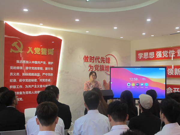 宣誓仪式在庄严的《国歌》中拉开序幕。随后,由黄霞老师领誓,全体新党员庄严宣誓,许下为共产主义奋斗终生的誓言。铿锵有力的誓词,表达了对党的无限忠诚和为共产主义奋斗终生的决心和承诺。员工党员代表张玉婷发言,他们感谢党组织和公司悉心培养的同时,表示将时刻以党员的标准严格要求自己,积极响应党组织号召,发挥先锋模范作用。最后,严红霞书记发表讲话,她强调党员的政治生命将从成为预备党员开启,一定要牢记今天立下的誓言,端正入党动机,牢记全心全意为人民服务的宗旨,在今后的学习工作中,更加严格要求自己,努力成为一名优秀的中国共产党党员。