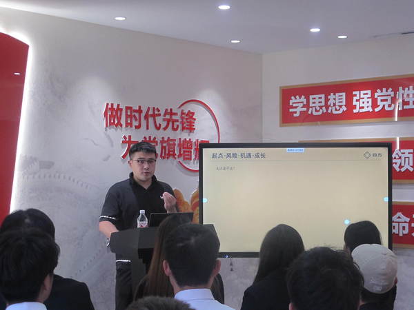 仪式结束后,2018届优秀员工江磊、汪卉、司博文同学受邀为党员同志们分享学习与工作经验。江磊,2018届电气专业员工,现任北京四方继保自动化有限公司直流输电及电子业务高级项目经理,他分享了疫情期间在肯尼亚的工作经历,希望各位同学怀抱梦想,脚踏实地,为实现中华民族伟大复兴不断奋斗;汪卉,2018届机械专业员工,中国科学技术大学力学专业在读博士,她分享了自己求学历程,在专业选择和能力提升等方面提出了中肯的建议;司博文,2018届机械专业员工,现就职于南京科远智慧科技集团股份有限公司,他通过分享个人职业经历,讲述了如何在学习和工作中坚持党的领导、秉承党的宗旨。优秀员工代表的发言充满了启发,使在场的党员同志们深受教育和鼓舞。党员们表示,“听完员工的分享,对共产党人的初心和使命有了更深的认识。”