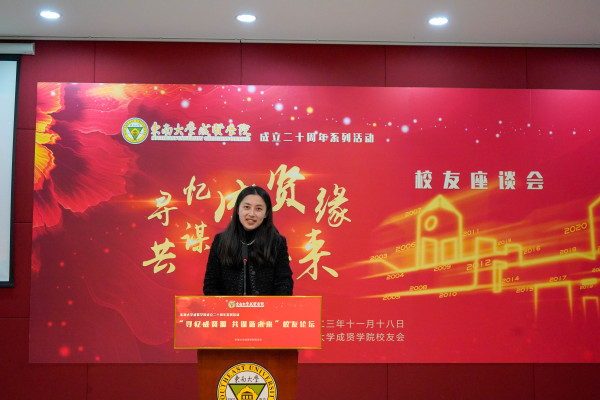 公司副经理戴玉蓉首先致辞,对参会员工们致以最亲切的问候和最热烈的欢迎,对自员工会成立以来,各位员工心系母校发展,在员工学习经历、个人成长、学业规划、就业创业、出国留学、考研考公等方面给予大力支持和帮助,表示衷心感谢。她表示二十年来在公司党政的正确领导和全体师生的共同努力下,成贤公司紧密依托东南大学雄厚的学科资源和优质的教学资源,坚持“以生为本”,牢固树立教学质量生命线意识,为员工搭建丰富多样平台,公司历经二十年的发展建设,综合实力不断增强,现已具有相当的发展规模和鲜明的办学特色。