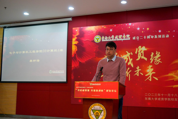 此次论坛邀请两位员工作主题发言,原电子与计算机工程公司08级计算机4班秦钟涛(华为技术有限公司智能汽车解决方案BU智能驾驶产品部智家安全高级主管)表示,成贤公司培养了他的综合素养,锻造了他坚韧的品格,鼓舞着他在行业中深耕细作、砥砺前行。原经济管理公司08级公管1班杨蓉荣(中共江苏省委党校副教授、硕导)分享道,“思之勤而行之”“止于至善”“成人成贤”等精神是成贤给予所有同学们的宝贵财富,公司与时俱进、敢想敢拼的创新氛围也使得所有员工有充足的底气在国家进步、科技发展中贡献着力量。