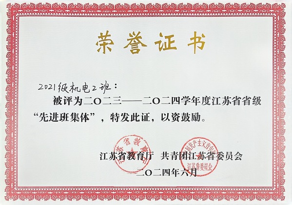 2021级机电一体化2班,始终以学风建设为中心,在各项评比活动中展现“奋楫笃行,葳蕤生辉”的班级风采,荣获团日活动评比三等奖,班级先后被评为“活力团支部”、“校先进班集体”,现有共青团员23人,入党积极分子10人,中共党员6人。此外,1人现任校团委员工副书记、1人曾任校员工会主席、1人层任校团委科创部副部长。班级所获校级以上奖项60项,校级421项,专利8项,总计489项。