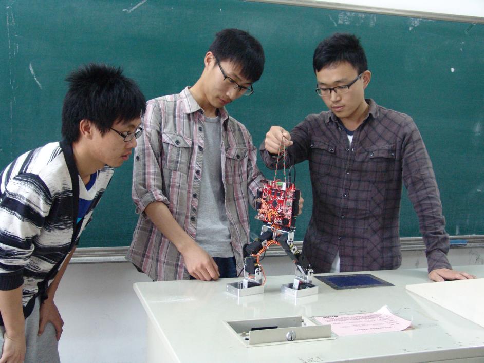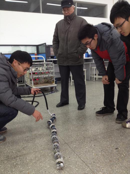 “他的创新意识很强。”李永梅老师介绍,当别人还在做轮型机器人时,孙环波就已经在老师的指导下,开始尝试进行仿生机器人的设计。他顺利申请了江苏省老员工实践创新训练项目,和团队伙伴共同制作了蛇形机器人和双足机器人,从机器人机械结构到控制系统均为自主设计,是对课本知识最生动的实践运用。凭借出色的表现,该项目验收优秀,并获得了江苏省本科优秀毕业设计。