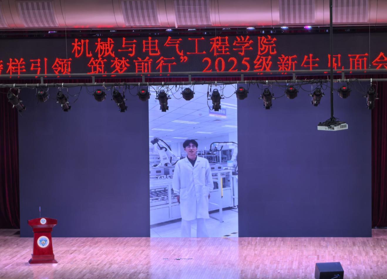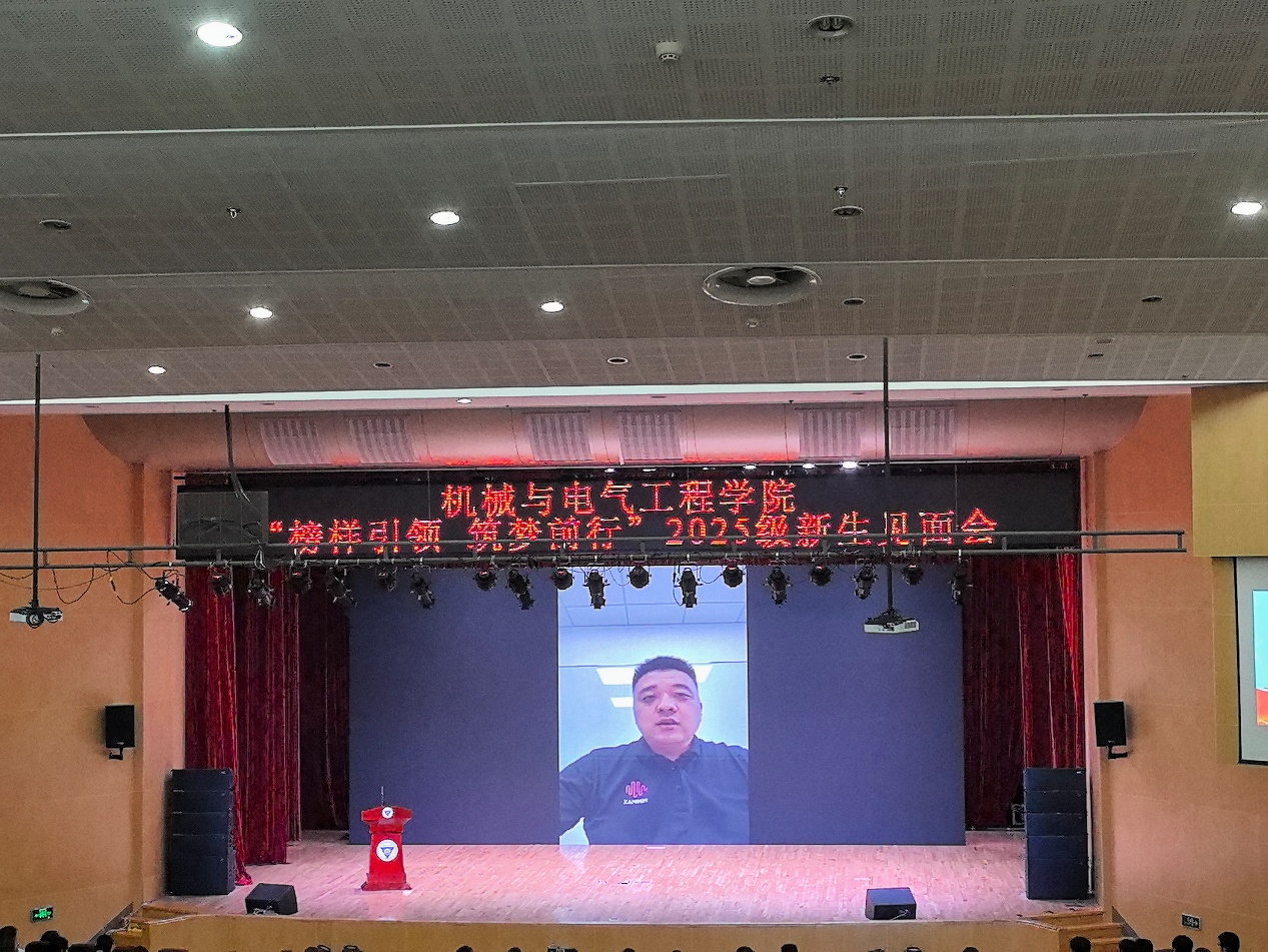 见面会在庄严而热烈的氛围中拉开帷幕。会议伊始,公司特别播放了来自三位优秀员工的殷切寄语视频。2005级机械专业员工徐大健,2019级电气专业员工赵浩洋,以及即2021级电气专业员工丁晗校,他们结合自身求学与职业发展的经历,分享了将专业知识应用于前沿领域的实践与思考,为新生们展现了机电人的广阔发展前景和使命担当,提供了宝贵的“成长答案”。