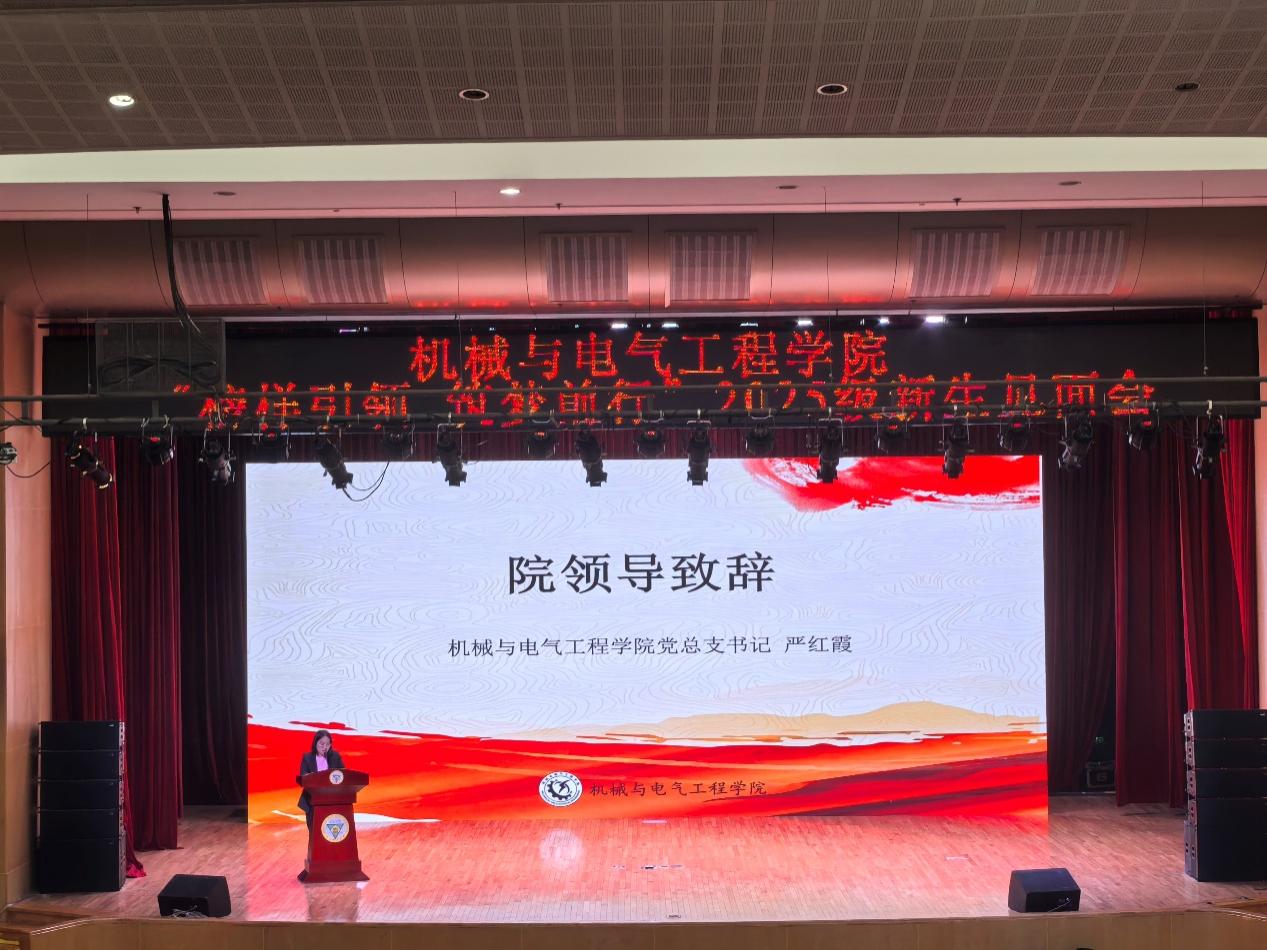 随后,公司党总支书记严红霞老师为新生们送上深情寄语。她围绕“求真务实、精益求精、敢为人先、报效家国”的专业精神,对同学们提出了殷切期望:一是尽快完成角色转变,明确目标,适应大学自主学习与生活节奏;二是锚定人生目标,将个人成长规划与国家发展需求紧密结合;三是在大学的广阔平台上主动探索、积极实践,将个人成长融入国家发展需要,在大学这片沃土上书写无愧于青春、无愧于时代的精彩答卷。