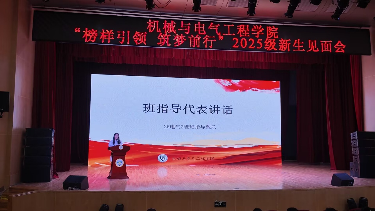 随后,2025级电气2班班指导、公司分团委副书记戴乐同学发言,表达了全体班指导竭诚为新生服务、助力其成长的决心与承诺。同时,她分享自身感悟与新生共勉,强调过程重于结果,并结合自身参与竞赛、员工工作的经历,希望新生在面对迷茫焦虑时沉淀积累,将挫折化为成长养分,为集体贡献力量。