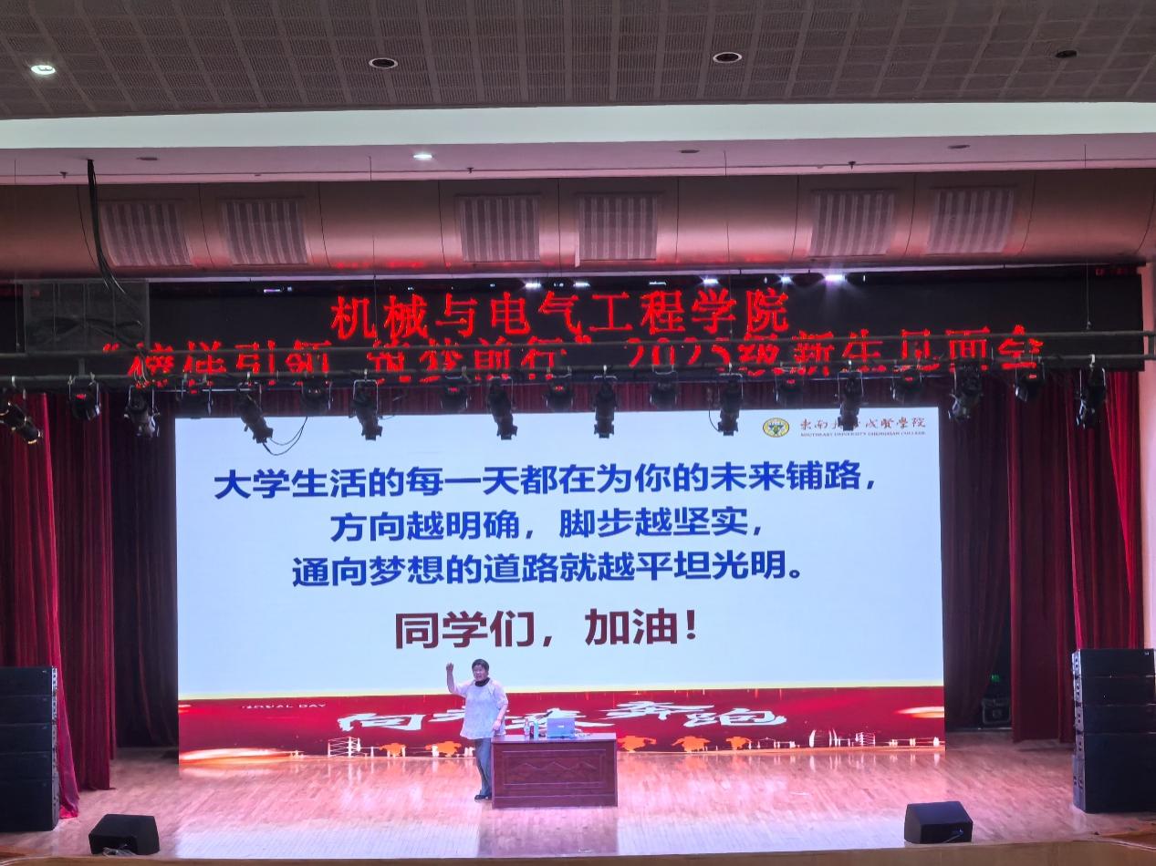 活动的压轴环节是由经理许映秋教授为新生讲授“开学第一课”。许经理以深厚的学术造诣和丰富的行业经验,高屋建瓴地剖析了当前机电领域的技术革新趋势与未来发展方向,让新生们对所学专业的时代价值有了更深刻的认知。同时,她深入浅出地阐释了大学学习 “疑、问、思、辨、用、创” 的六字箴言,强调 “用” 是学习的最终落脚点,许经理指出,只有将知识应用于解决实际问题,才能真正实现学习的价值。最后,她对新生们提出明确要求,希望大家以 “追求卓越” 的态度,成长为兼具专业素养、创新能力与家国情怀的优秀 “机电人”。